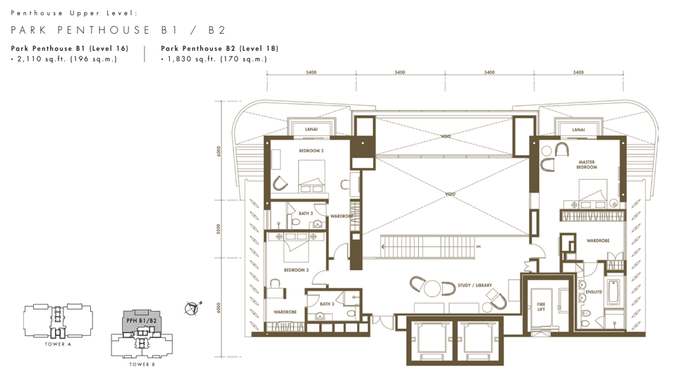 Size : park penthouse B1 2110 sqf (Lvl 16) park penthouse B2 1830 sqf (Lvl 18)