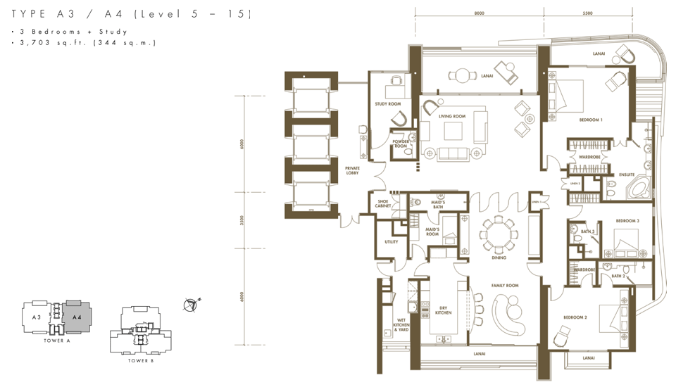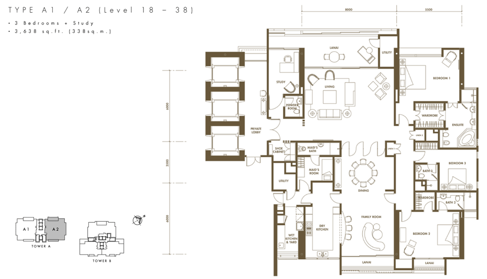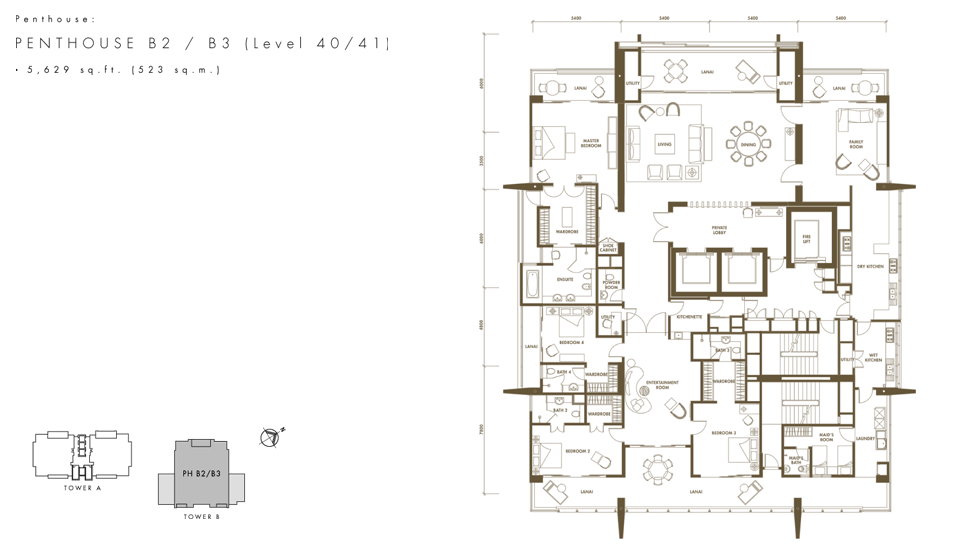 Size : 3444 sqf (Lvl 41)/ 3573 sqf (Lvl 43)