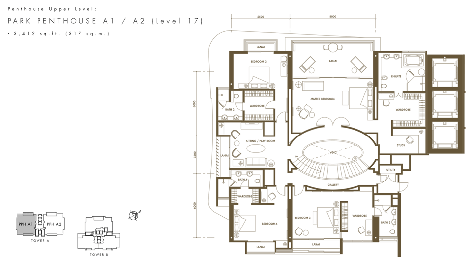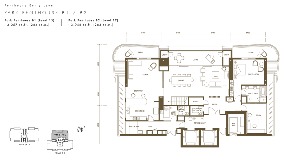 Size : park penthouse B1 3057 sqf (Lvl 15) park penthouse B2 3046 sqf (Lvl 17)