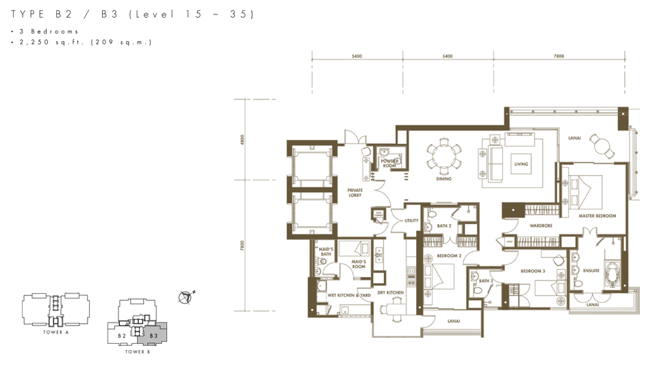 Size : 3724 sqf (Lvl 40)/ 3692 sqf (Lvl 42)